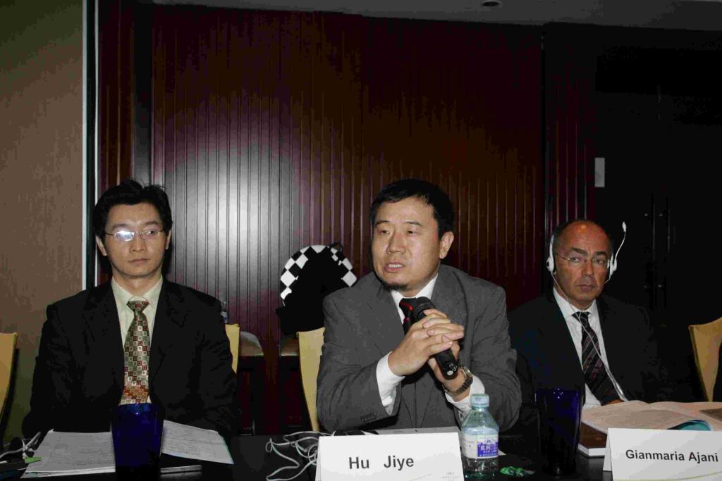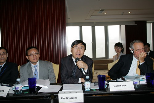 Logue教授与沈岿教授正在认真听取大会发言 朱少平主任正在发言