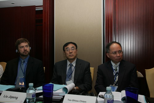 Clarke先生在和简资修教授进行交流 徐光东副教授和Weishaar博士正在认真听取大会发言