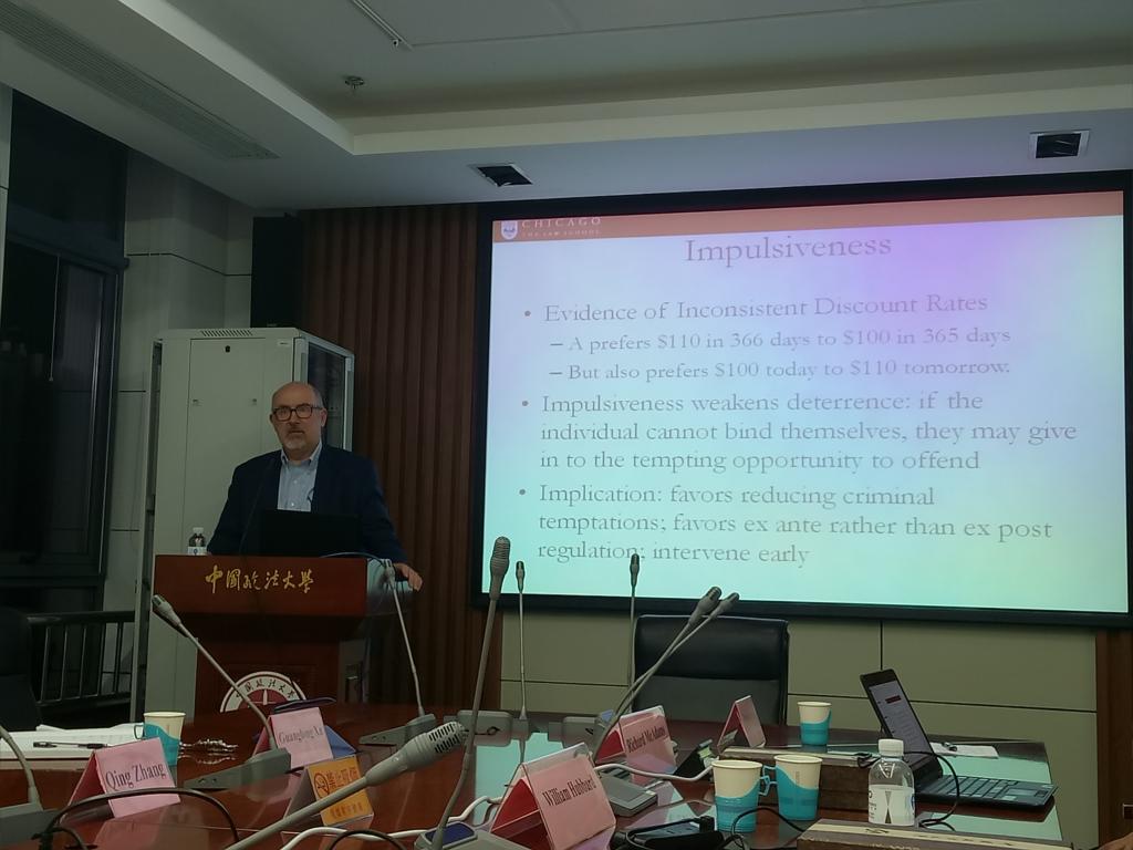 McAdams教授报告的主题是“How behavioral insights affects the economic analysis of criminal law and procedure? (行为科学如何改变刑法和刑事诉讼法的经济分析?)” McAdams教授首先对加里·贝克尔教授的刑法经济分析模型作了简要介绍,然后论述了行为科学的发展对这一模型的修正。他指出,行为科学的研究已表明,现实中的人并非严格意义上的理性人,而是具有有限理性、有限自利和有限意志特性的人。随后,McAdams教授以三种具体表现为例,介绍了行为科学对刑法的经济分析的启示。第一种具体表现是乐观偏见,即人在对未来进行预测时,往往倾向于高估好结果发生的可能性,却低估坏结果发生的可能性。这一特性带来的后果是,刑法的预防作用被削弱了。因为行为人往往会高估犯罪所带来的收益,同时低估被侦查的力度。由此,行为人也会在规避侦查方面付诸更少的谨慎,进而增加了被处罚的可能性。第二种表现是冲动,即由于人类意志的有限性,行为人在面对犯罪诱惑时难以克制自身的行为,由此带来的后果同样是刑法预防作用的削弱。这给我们的启示是,减少犯罪本身的诱惑性可能是有效的;比起对犯罪进行事后的惩罚,事前的介入可能更有效。在最后一种表现中,McAdams教授引入了幸福研究的观点。有研究指出,人们往往可以通过一定的时间来适应一些好或者不好的事情,同时人们在对于预测影响他们幸福程度的事情上往往会犯一些错误。在刑事司法领域,这一现象体现为犯罪人通常在两到三年之后就会适应监狱的生活,且犯罪人在被刑满释放后的一段时间内仍会经受显著的痛苦。这说明刑法的预防机制是十分复杂的,随着刑期增加,刑罚的实质性严厉程度会产生边际收益的递减,因而,通过增加刑罚的严厉程度来预防犯罪是一种成本高昂的方式。对此,McAdams教授认为,可以通过一定的措施来修正这些问题,例如提高刑事侦查的成功率,提高监狱的适应难度,以及使犯罪人在出狱后过上更好的生活。