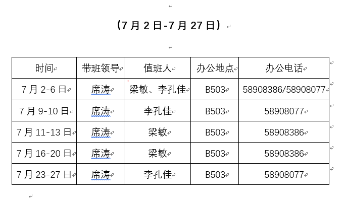 2018年365体育投注365.tv夏季学期值班表